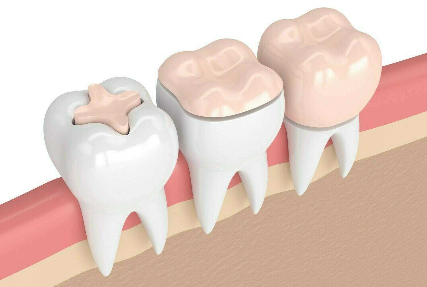 On parle d’inlay lorsque la cavité à combler se trouve à l’intérieur de la dent et d’onlay lorsque la cavité englobe une ou plusieurs parois.
